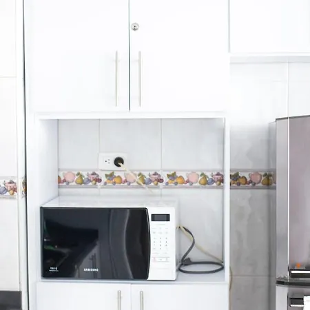 En este apartamento hay una cocina completa con nevera, tostadora y cristalería, además de servicio de tetera/cafetera.